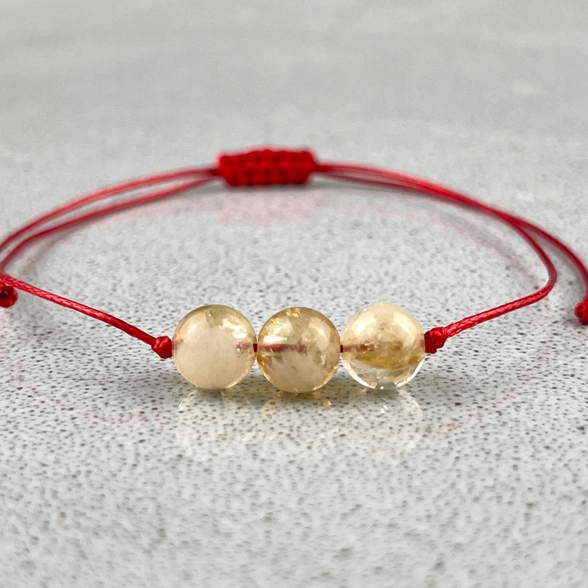 Czerwona nitka, znana jako symbol ochrony, łączy się z energią cytrynu, tworząc talizman przyciągający szczęście i obfitość. Jej intensywny kolor przypomina o sile i odwadze potrzebnych do realizacji marzeń. Noś ją, by każdego dnia wzmacniała Twoją determinację i pozytywną energię.
